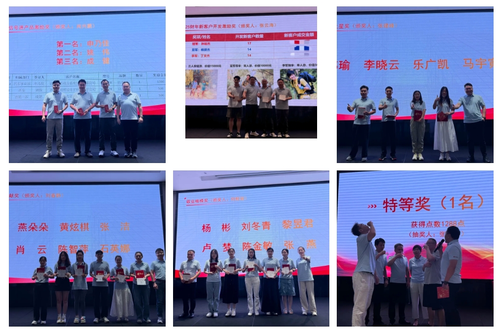 接下来公司管理层对年度优秀团队及个人进行了优秀表彰。本次奖项体系以精准激励业务突破以及系统构建人才生态为核心,旨在鼓励在过往财年取得突出贡献的同事,并激励其他同事在下一财年取得更好的成绩,以形成继往开来的人才格局。