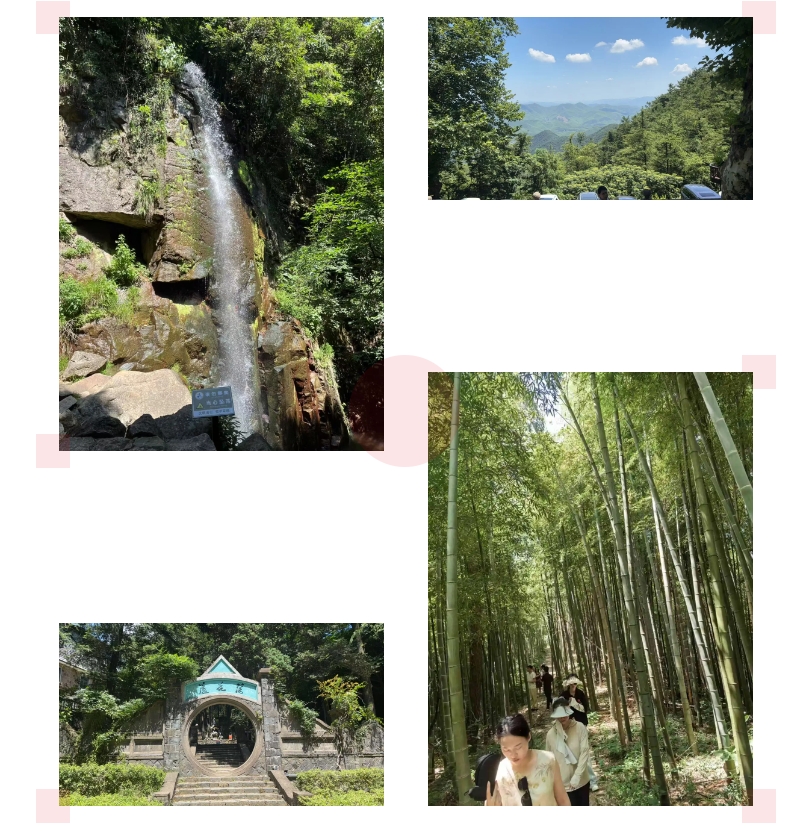 活动最后一天,全员探访了以竹海闻名的莫干山景区。漫步于剑池飞瀑与民国别墅群之间,既舒缓了身心,也从中汲取了历史与自然赋予的灵感。烈日炎炎,抵挡不住同事们徒步登顶的步伐和决心,阳光下反射出金光闪闪的汗水和运动完后脸上泛起的红润,构成了独属于咏绎人的印记。